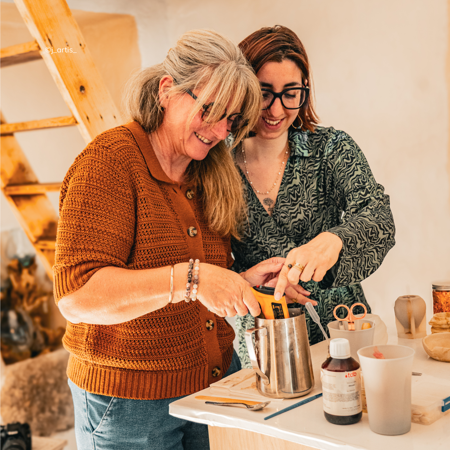 Nous utilisons de la cire végétale de soja pour les bougies en pot et de colza pour les bougies décoratives. La sélection de parfum de Grasse est une étape clé dans le processus. Nous les choisissons en fonction de l’ambiance souhaitée.