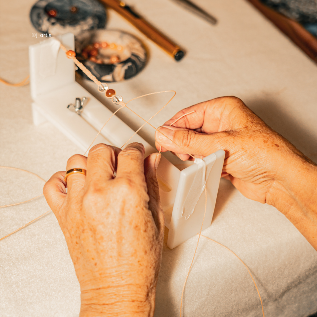 Découvrez l’art du tressage en macramé tout en explorant les vertus des pierres semi-précieuses. Un travail de précision demandant patience et apaisement.